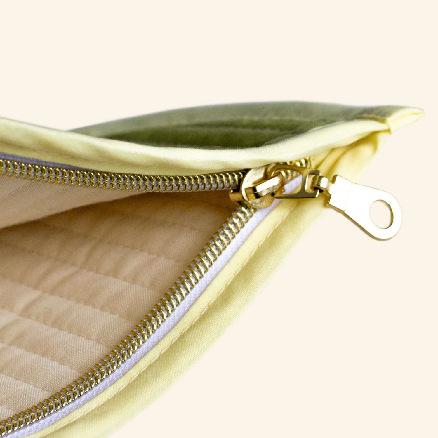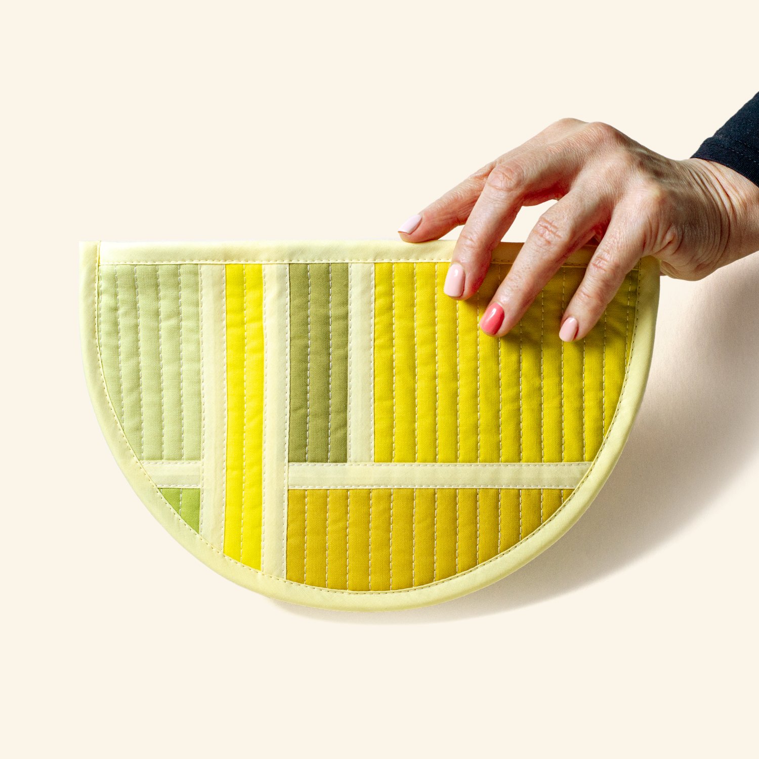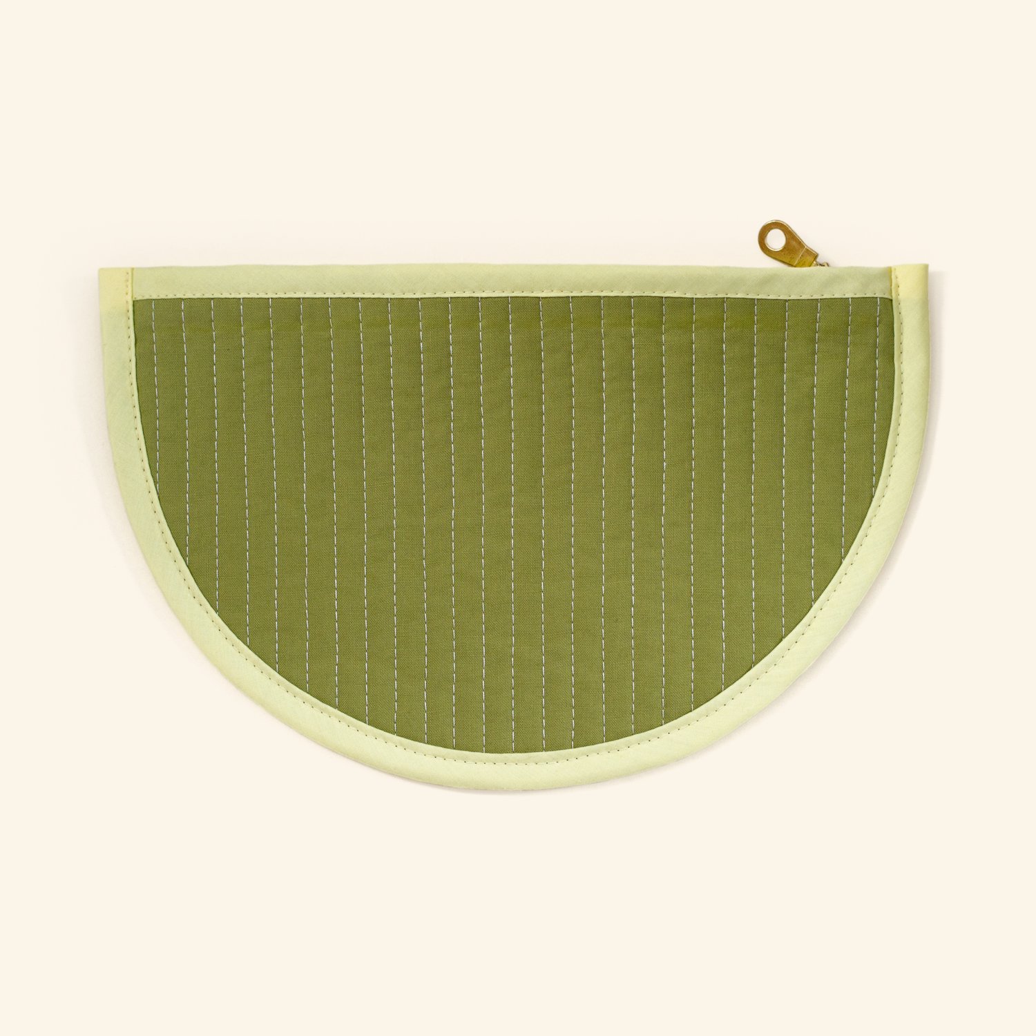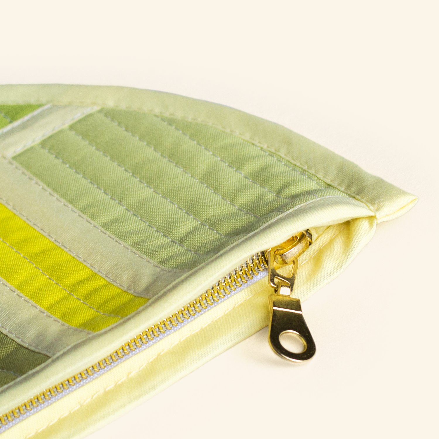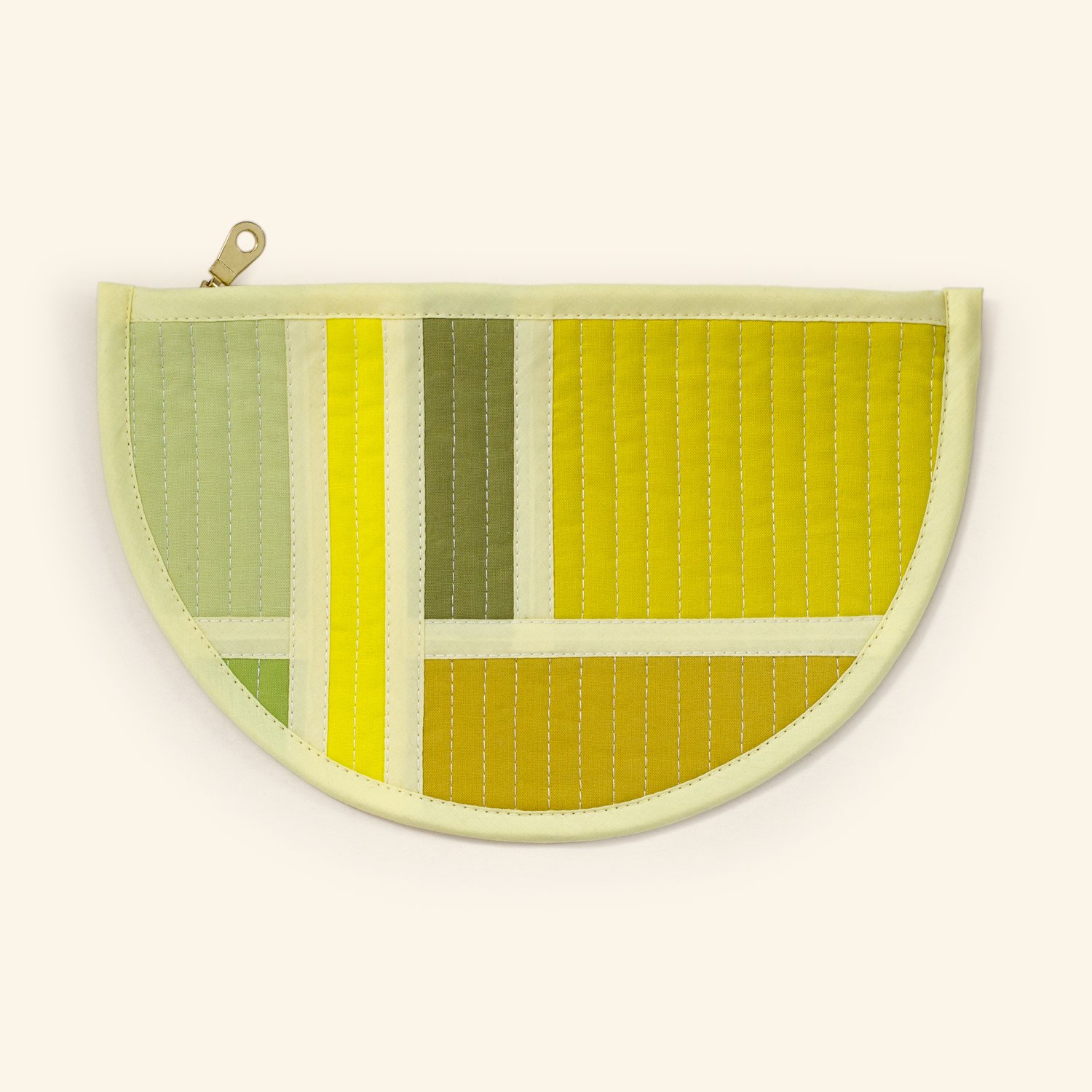 Mono-drian is a cute quilted half-circle clutch featuring a patchwork in varying shades of the same colour. It's the perfect size for essentials like your phone, lip balm, and a card, with extra room for any other little bits and bobs you might need on the go.